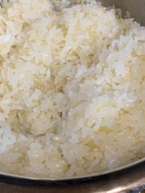 다 된 밥을 뚜껑 열자마자 찍었는데, 진짜 윤기 좔좔이다.