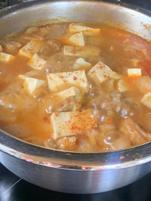 오늘은 오랜만에 우리엄마가 자주해주시던, 그래서 나도 엄청 좋아하는 돼지고기두부찌개를 끓여봤다.