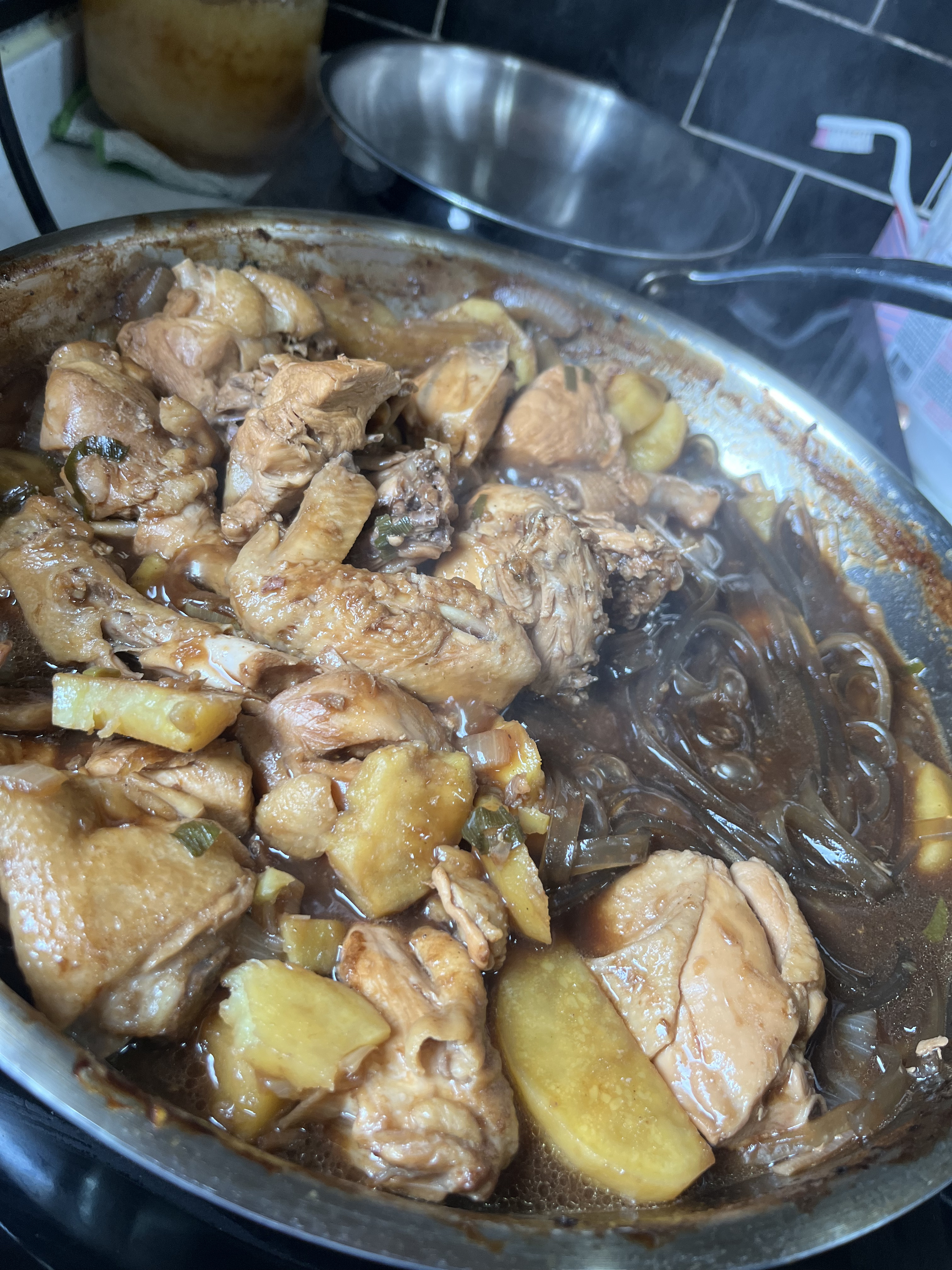 아주 반응이 좋아 오늘은 아이들과 아내를 위해 안 매운 버전의 찜닭을 준비했다.