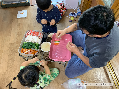 제일 먼저 꼬치전은 아이들이 아빠와 함께 만들기로 했다.
