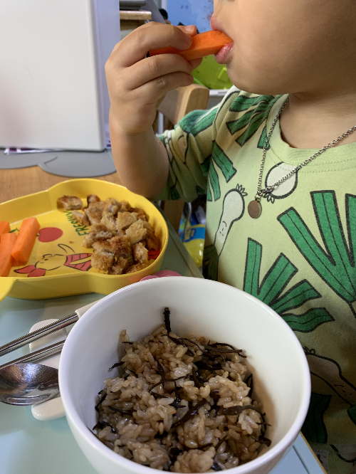그리고 아이들과 함께 만들어놨던, 우리 집 냉동실에 없으면 불안해지는 돈가스와 생당근으로 점심식사를 했다.