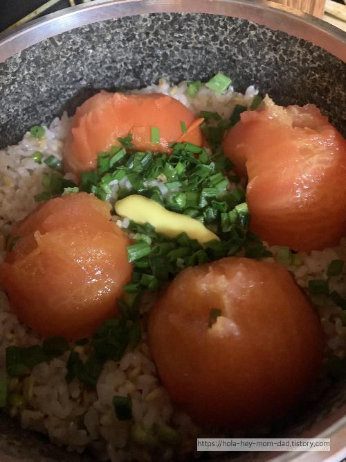 신선한 토마토의 향이 잘 느껴지는 최고의 솥밥이다.